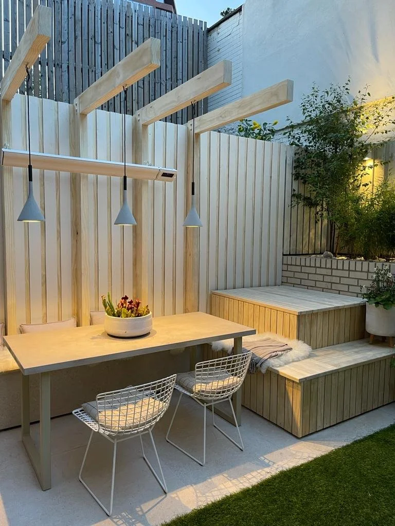 This transformation of a small garden was designed by Justine Potts and executed by us, it shows her clever use of space creating an imaginative multi use family inside out room.